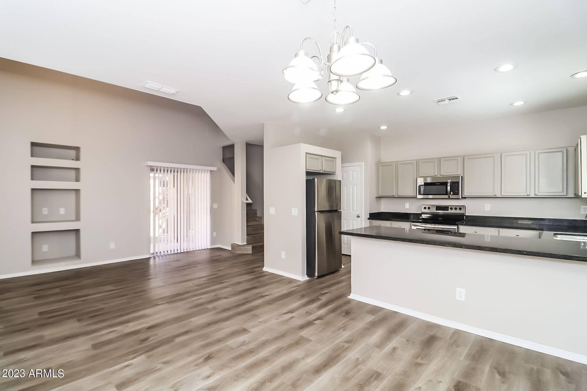 A charming home with 3 bedrooms and 2 baths in Phoenix is NOW available for move-in! This home offers vinyl wood flooring, high ceilings and lots of natural light throughout. Open floorplan living and dining space, perfect for entertaining! The kitchen features stainless steel appliances and ample cabinet and counter space. The main bedroom has a full ensuite bathroom with dual sinks. Enjoy the covered patio in the backyard! gated community. Community pool, spa and park. Rent does not include $11 in additional monthly fees. Appliances and mirrors will be installed prior to move in. scam alert ? please be aware of scammers online. This property is NOT on Craigslist or Facebook.