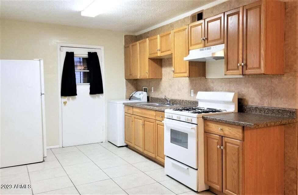 This fantastic 3BR 1BA Phoenix home has great curb appeal with custom gate, brick accents and citrus trees! Just minutes to shopping, restaurants and schools. Inside you'll find fresh paint throughout, tiled floors, ceiling fans and bright living space. The kitchen features upgraded cabinets and gas range. Each bedroom is nicely sized and the shared bath offers custom tile surround! The rear yard is perfect for entertaining with large lot! APPLY TODAY! Washer/Dryer not warrantied