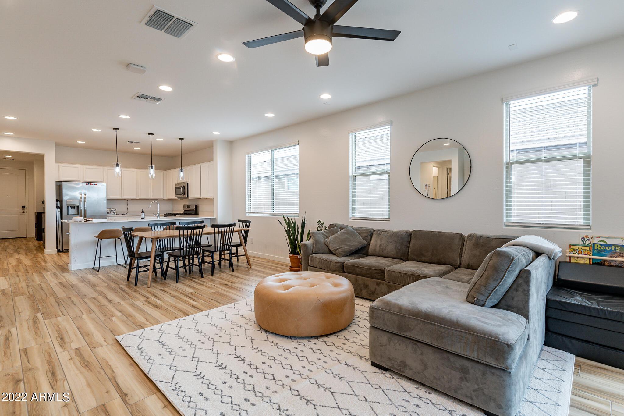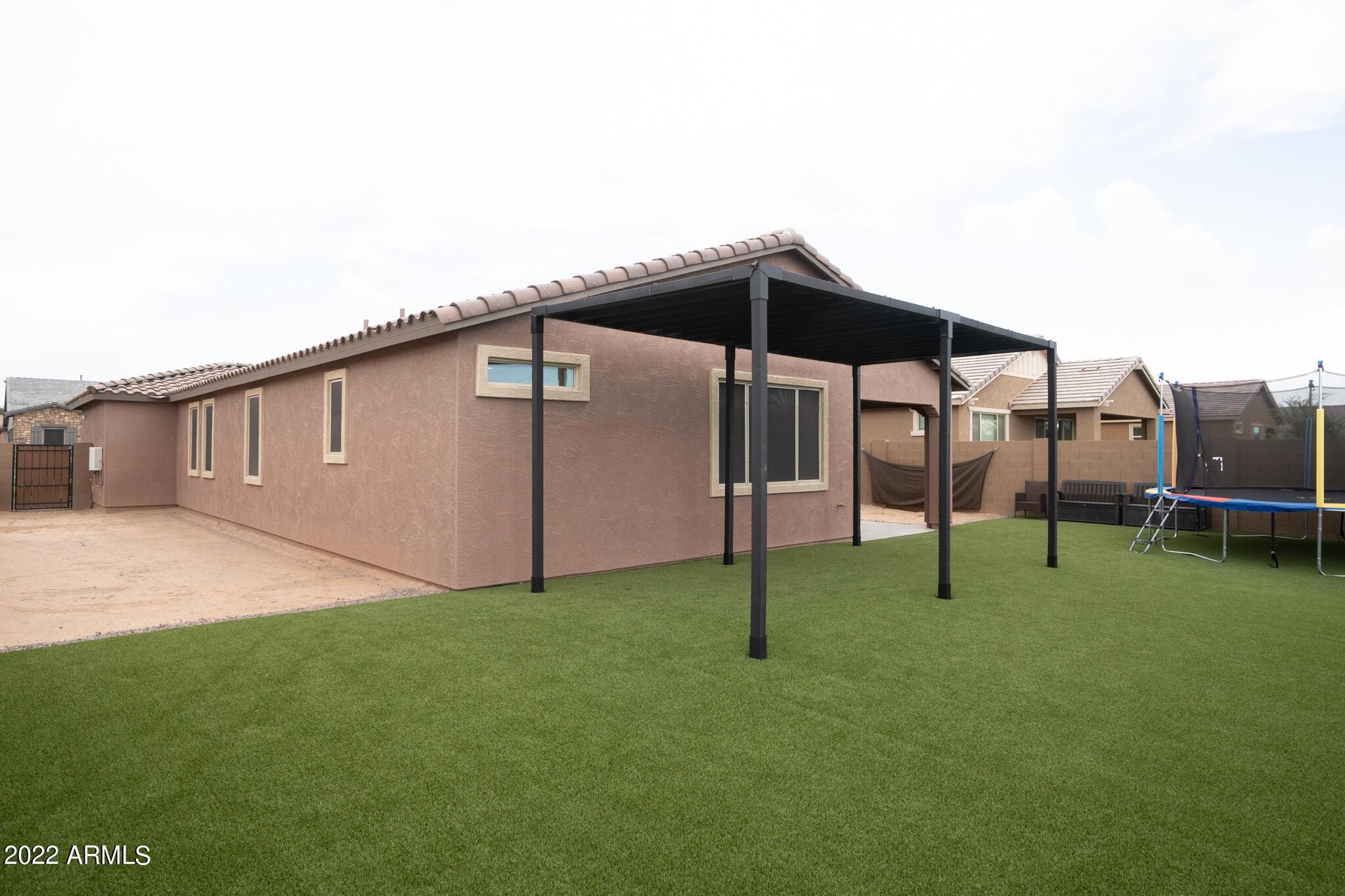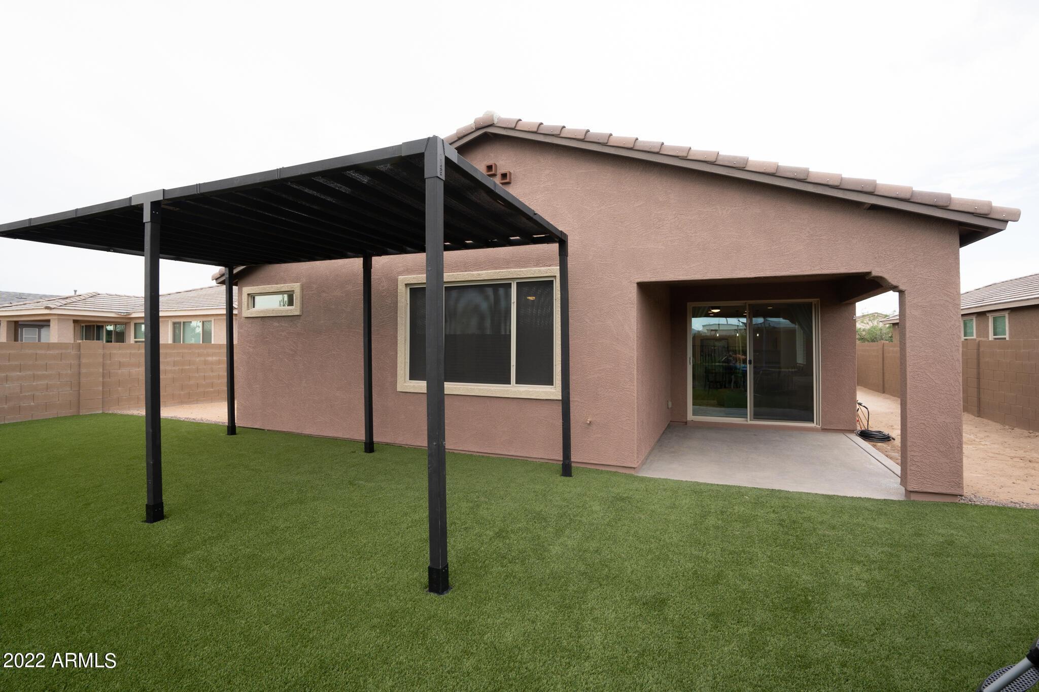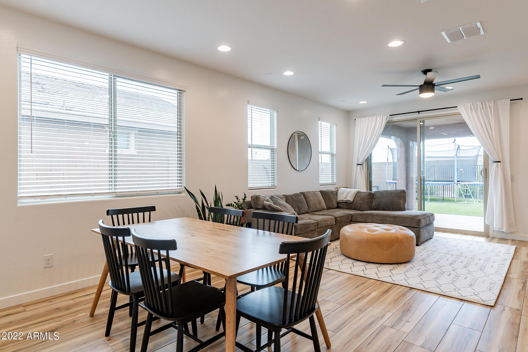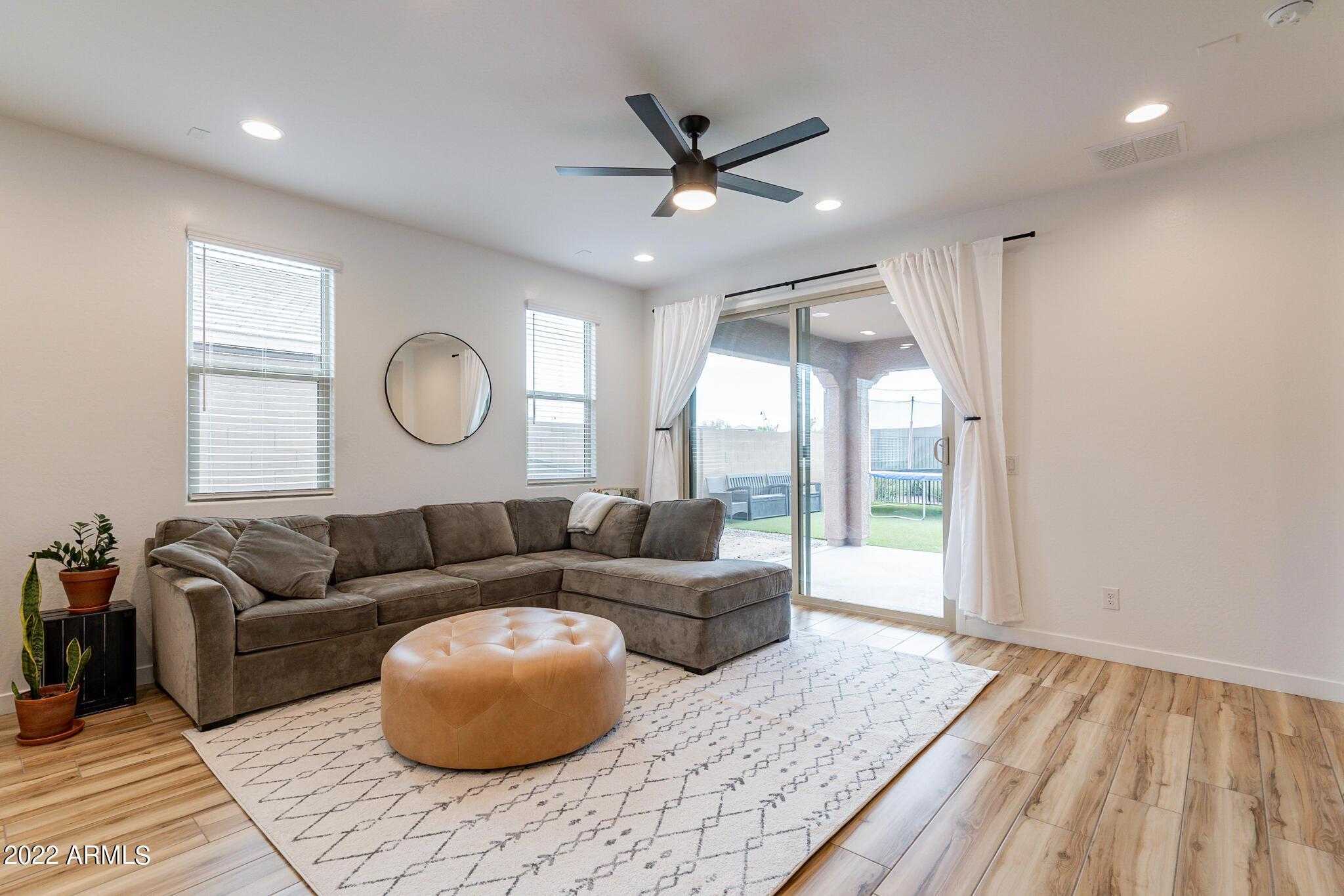 Very close to Queen Creek Marketplace Shopping Center, this 5 bedroom 3 bathroom, 1,970 sq. ft. home still looks brand new (built in 2021). Featuring a great room concept and a beautiful kitchen with Quartz counters, there is also upgraded tile in all the main living areas and some of the bedrooms, artificial turf in the backyard, and sunscreens on the west and south side of the house. The tankless hot water upgrade also saves on both energy and space.