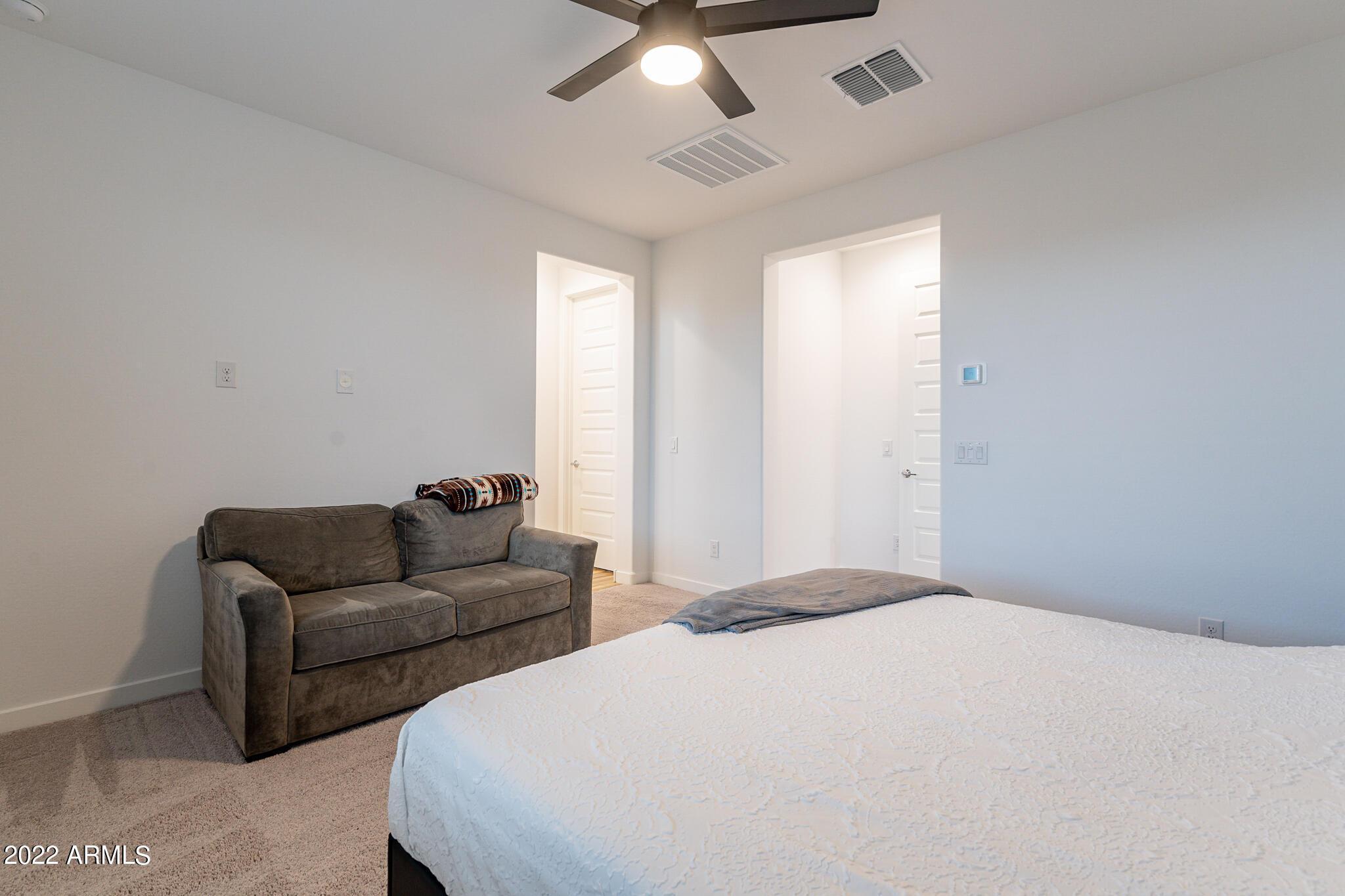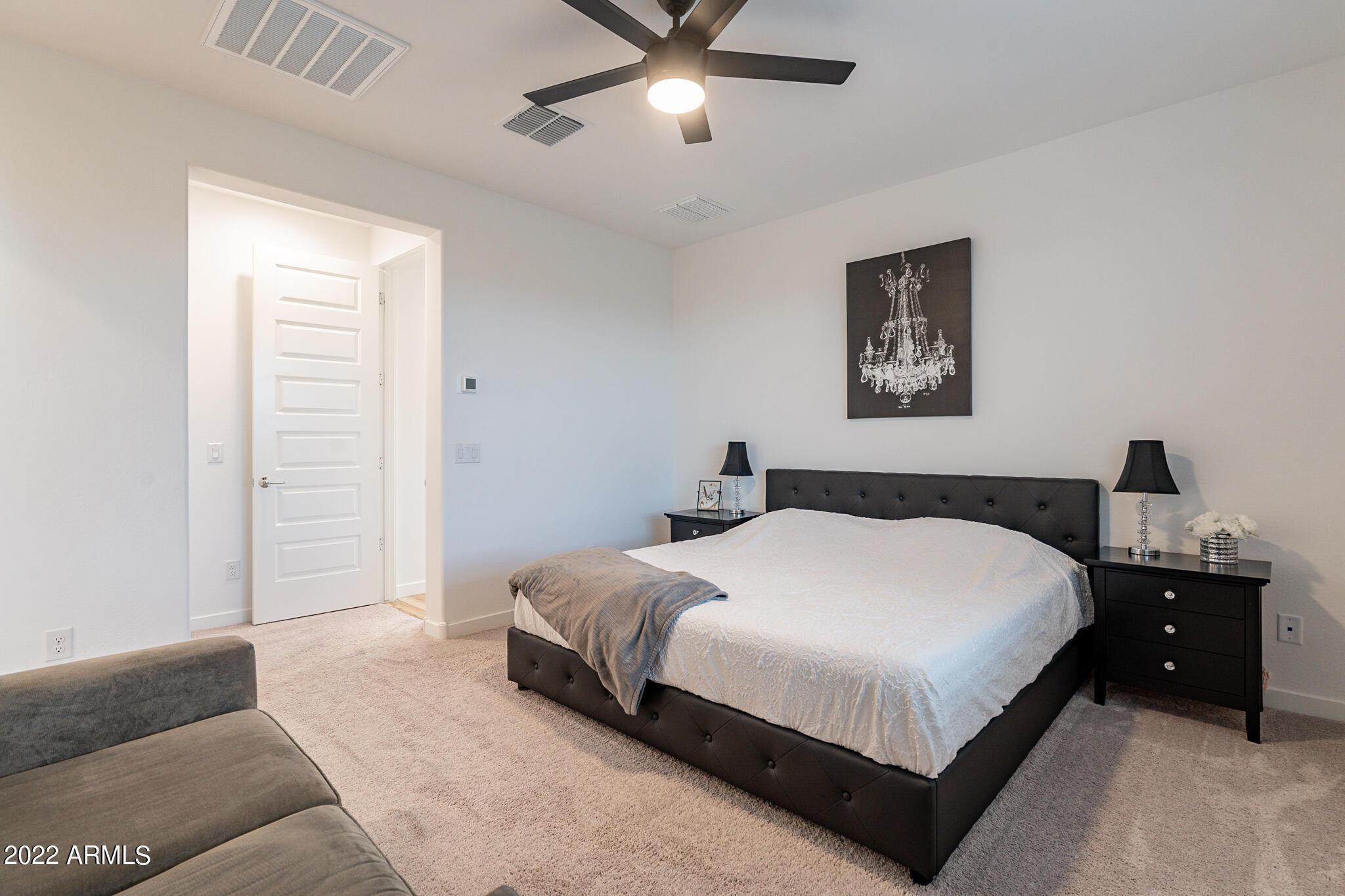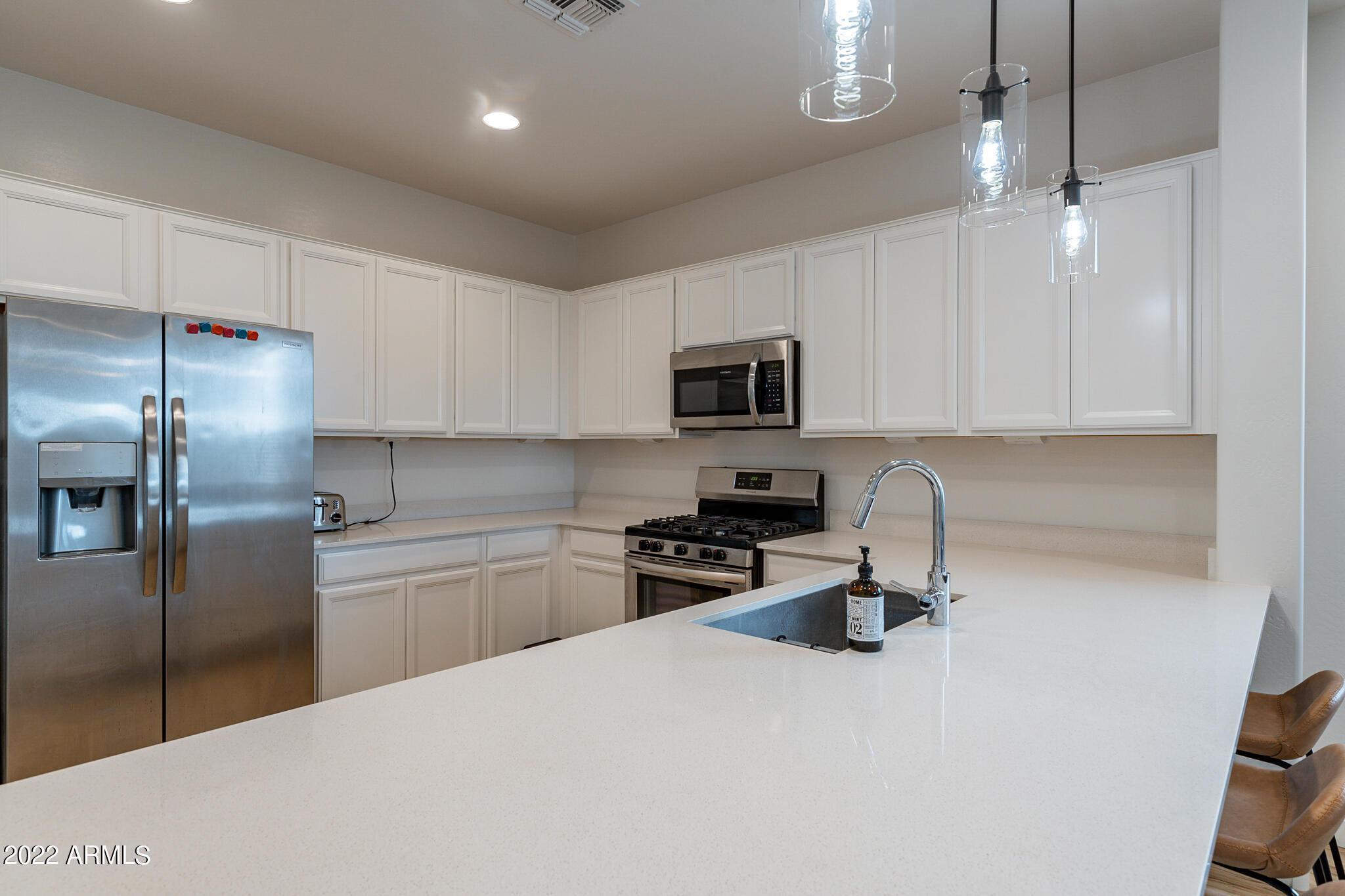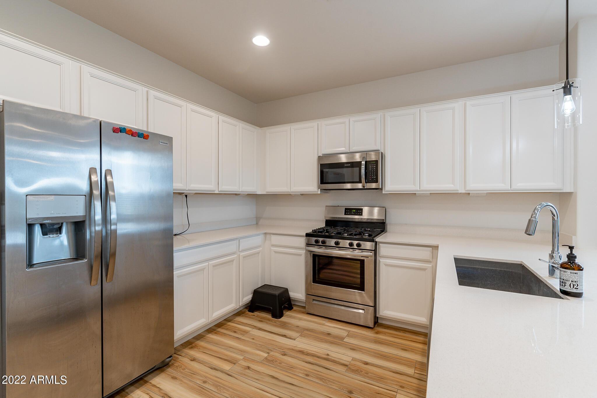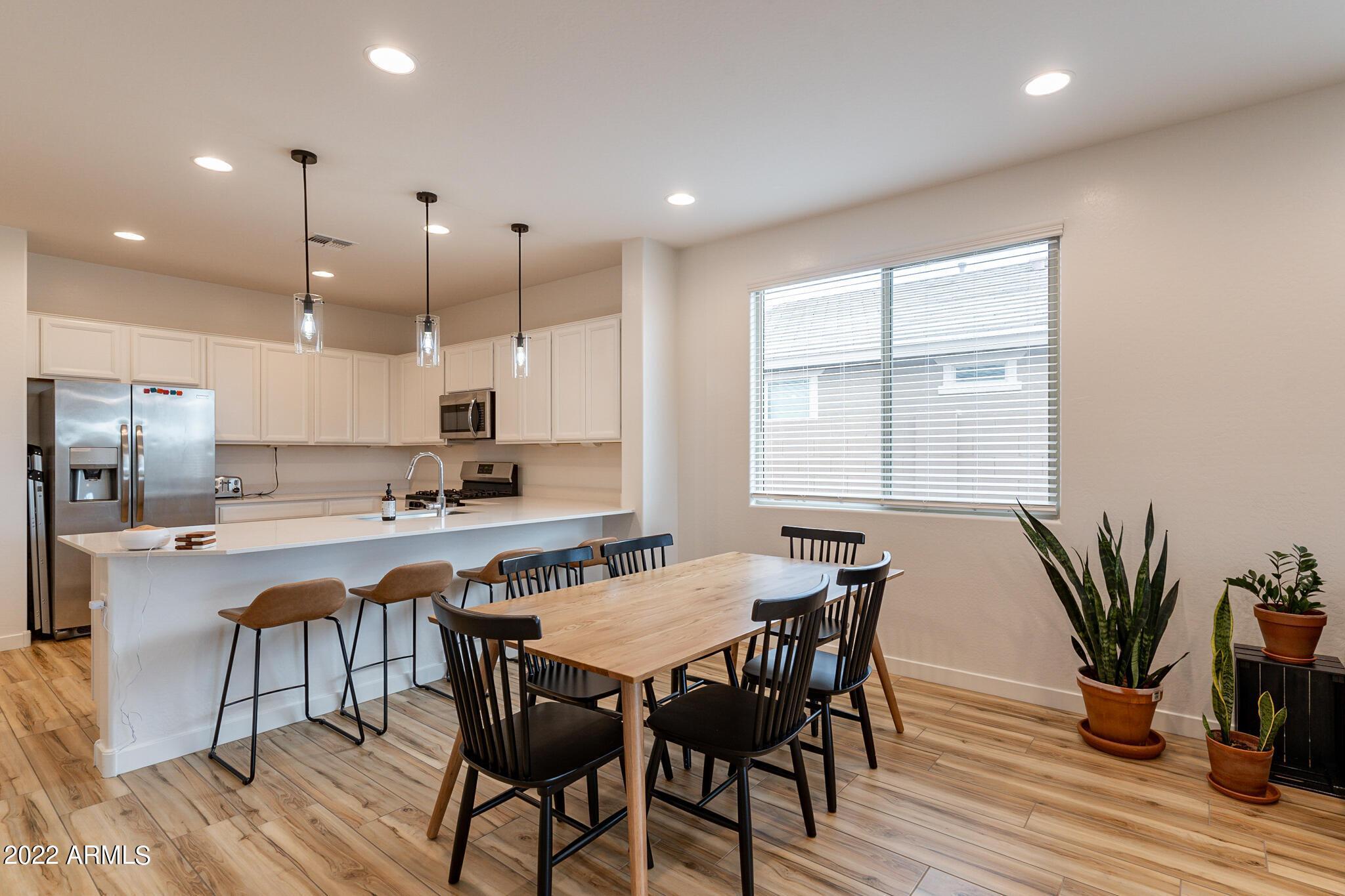Very close to Queen Creek Marketplace Shopping Center, this 5 bedroom 3 bathroom, 1,970 sq. ft. home still looks brand new (built in 2021). Featuring a great room concept and a beautiful kitchen with Quartz counters, there is also upgraded tile in all the main living areas and some of the bedrooms, artificial turf in the backyard, and sunscreens on the west and south side of the house. The tankless hot water upgrade also saves on both energy and space.