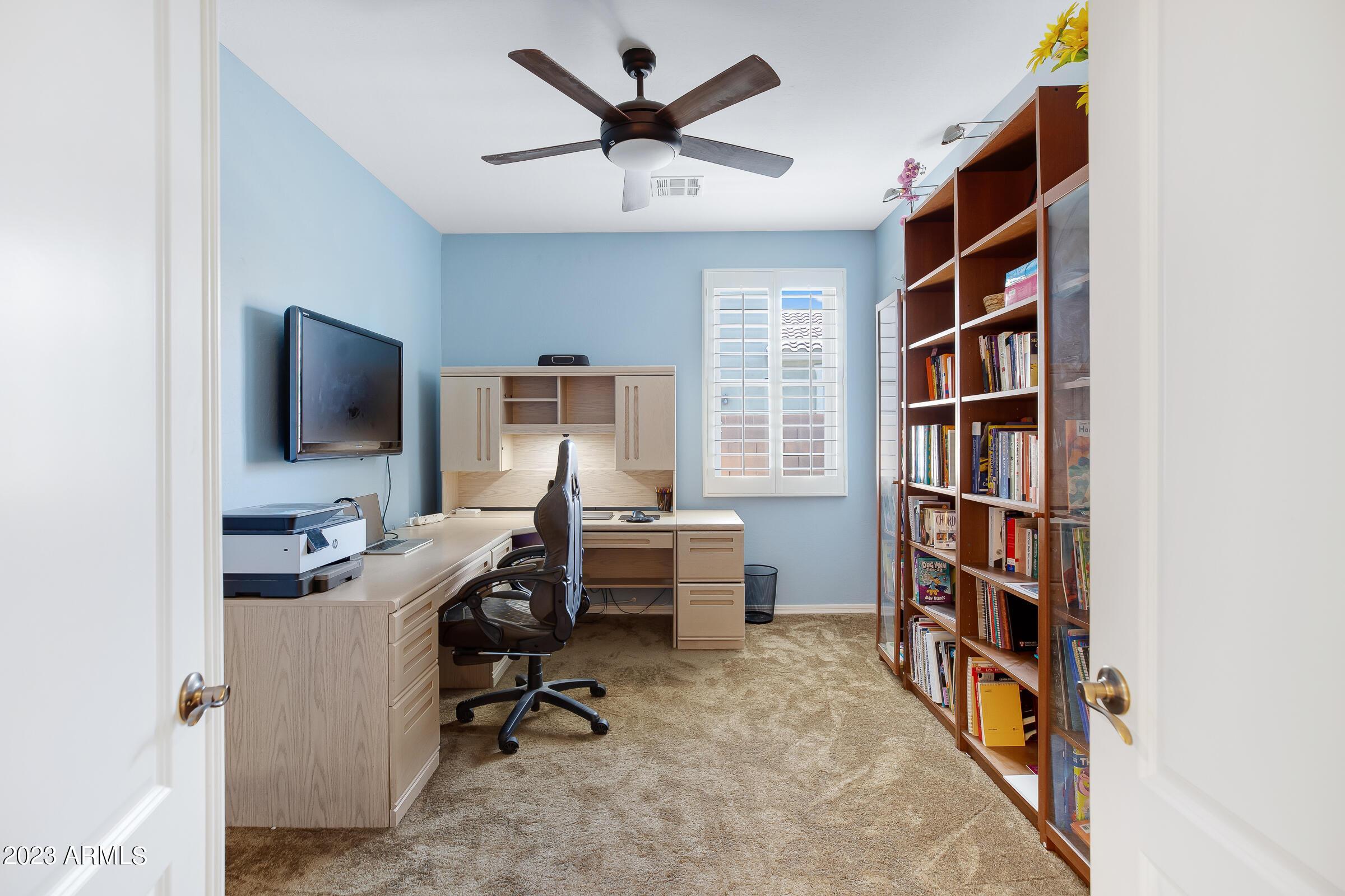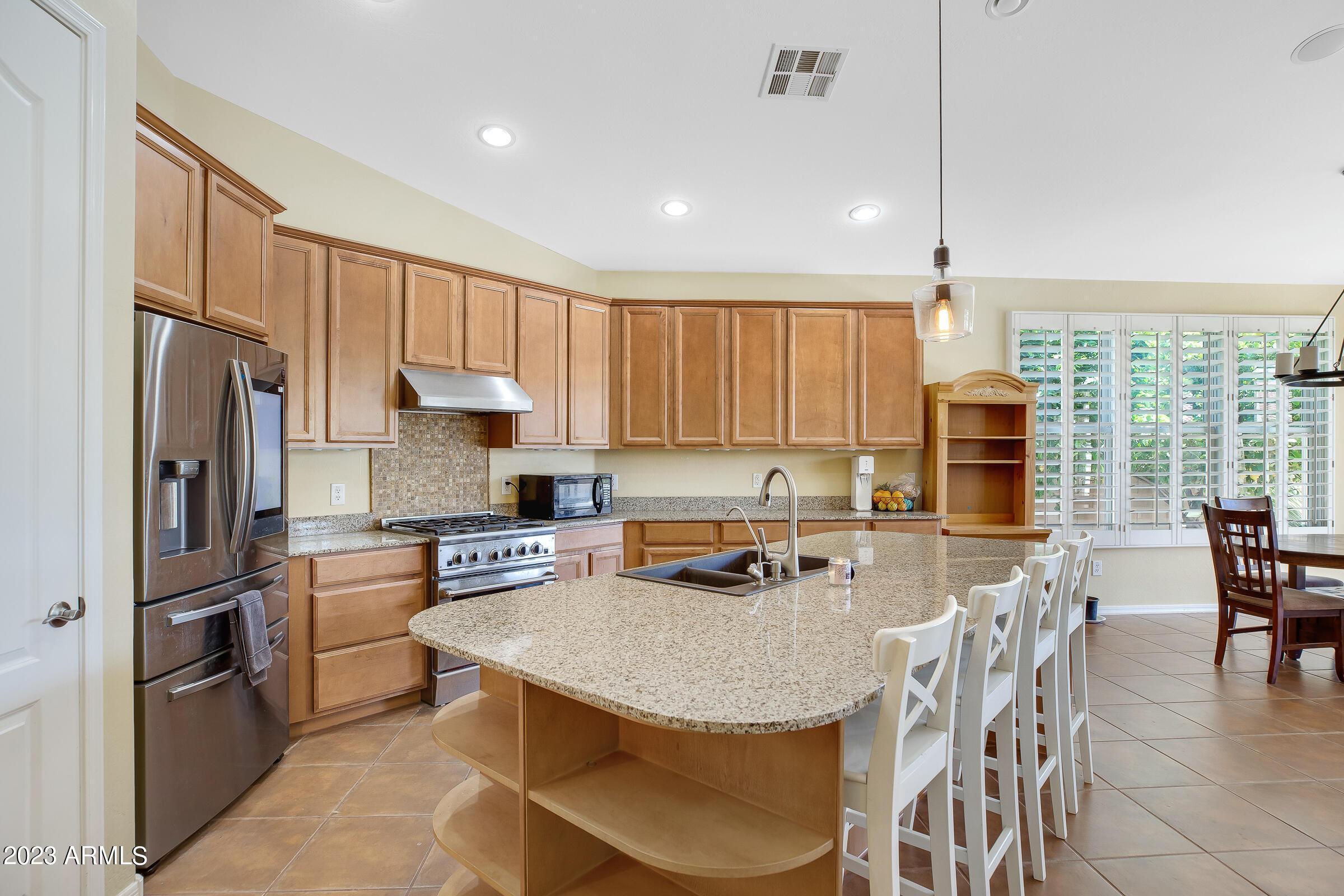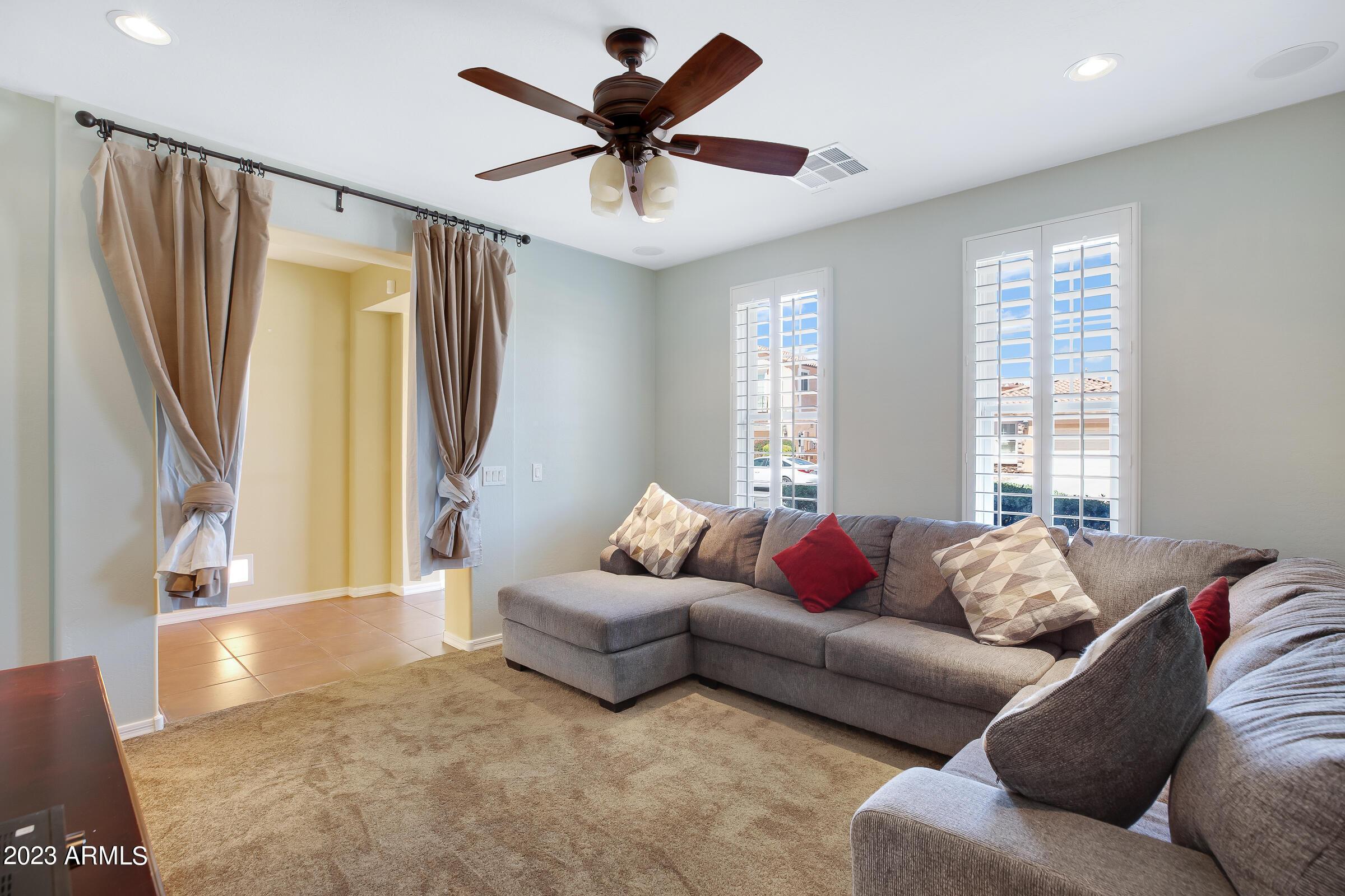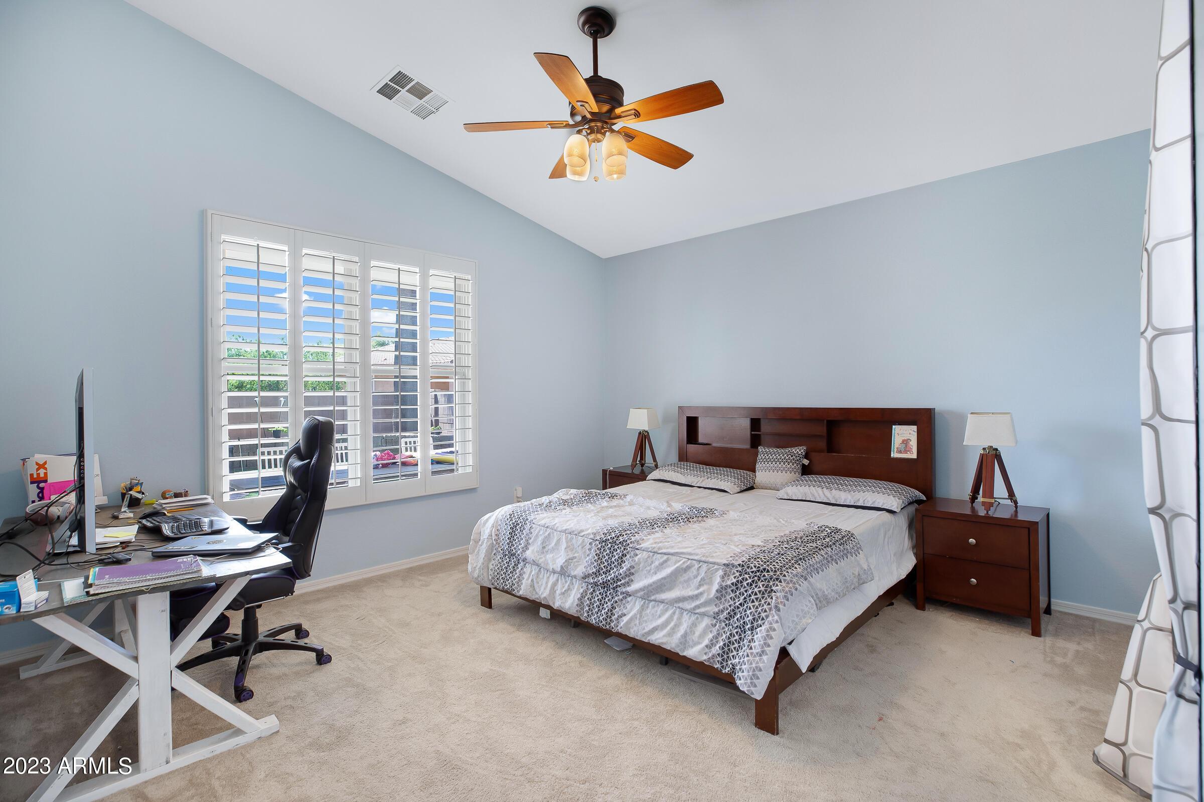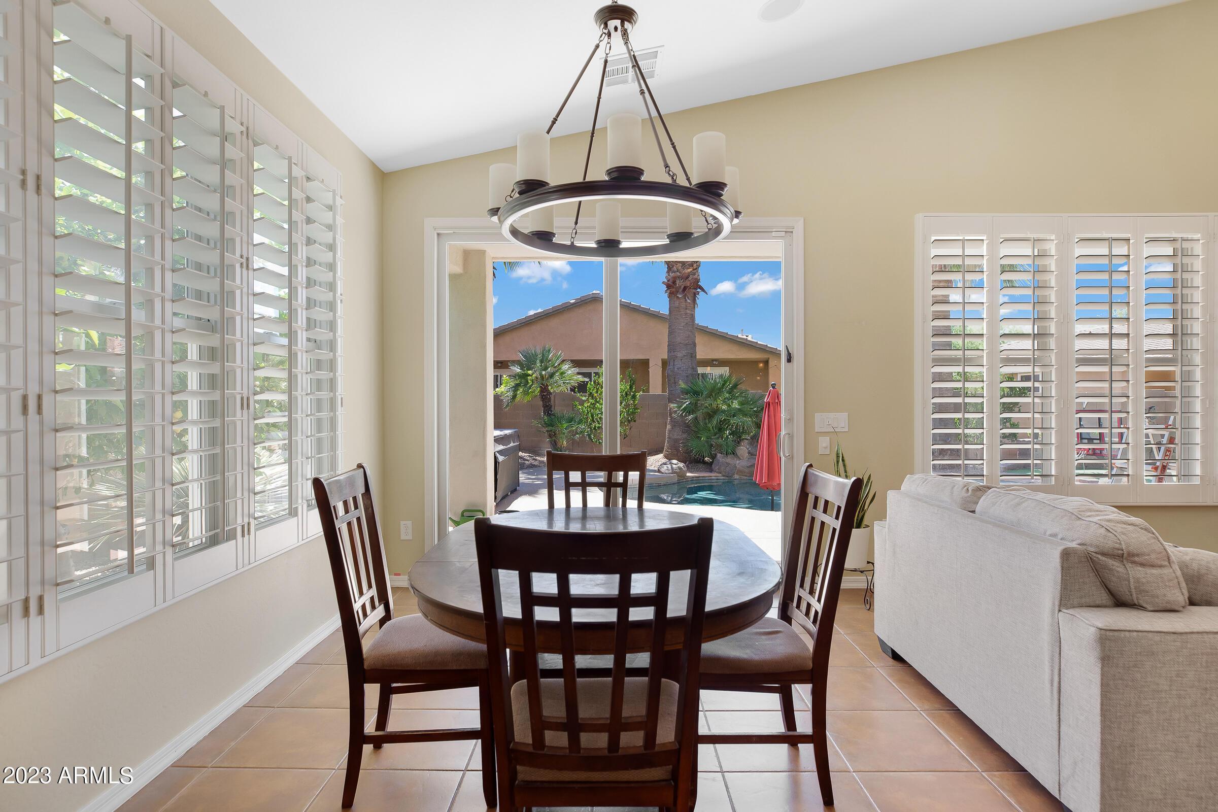 Amazing opportunity to rent this wonderful home that is available now!SAVE $$ with SOLAR! The backyard is an entertainers dream with heated pool, above ground spa, extended patio, putting green, palms, lemon & orange trees, raised irrigated vegetable and herb garden, large side yards with artificial turf and added storage. This immaculately kept home offers 3 spacious bedrooms w/ walk-in closets, plus a home office/den, separate living room & large great room w/ surround sound, vaulted ceilings, expansive kitchen w/ pantry, stainless appliances, commercial grade gas stove/ hood, granite counters, center island & tons of cabinets! Wood shutters & ceiling fans throughout. Prewired for Dish TV. Security System. Close to Loop 202, tons of shopping, dining, entertainment & Centennial Par