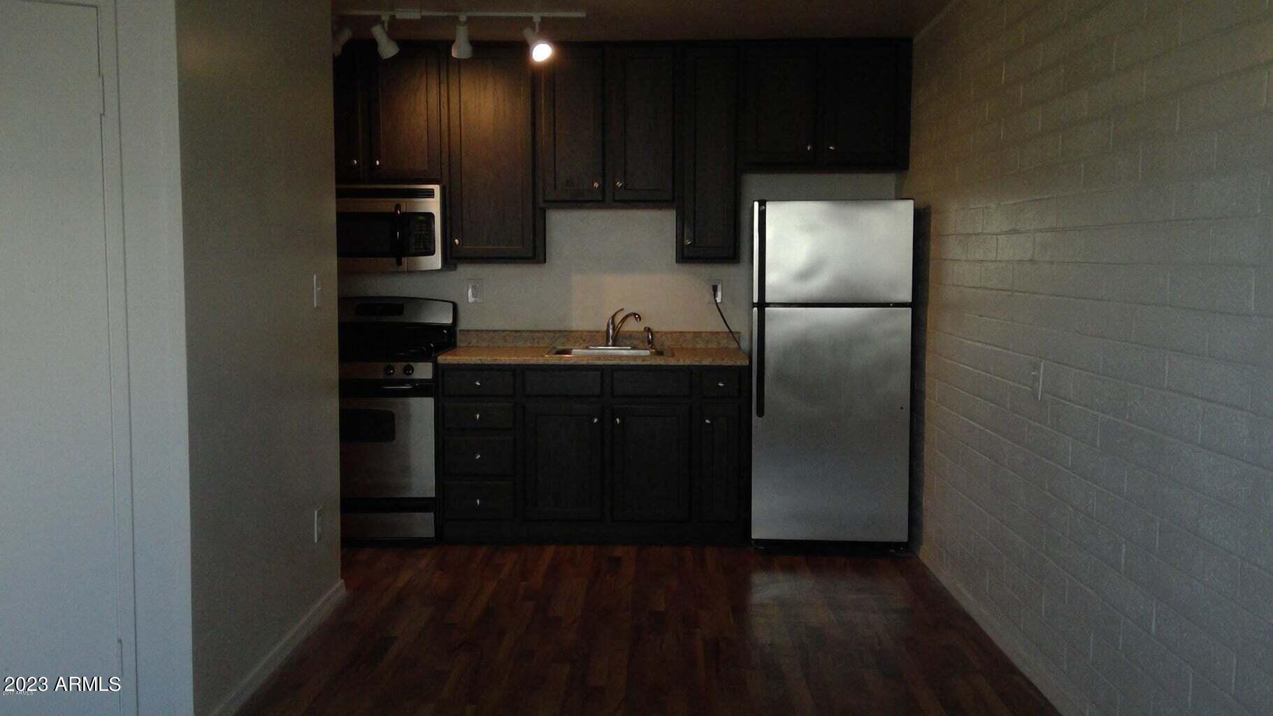Newly remodeled Studio apartment close to downtown, ASU, the light rail, shopping and restaurants * Kitchen features 42'' cherry cabinets and stainless steel appliances including fridge * Wood floors * Fresh coat of paint * Laundry room with coin-operated washer and dryer on premises * Assistive animals only * Tenant pays electricity and gas, Landlord pays water/sewer/trash * TENANT TO VERIFY ALL INFO