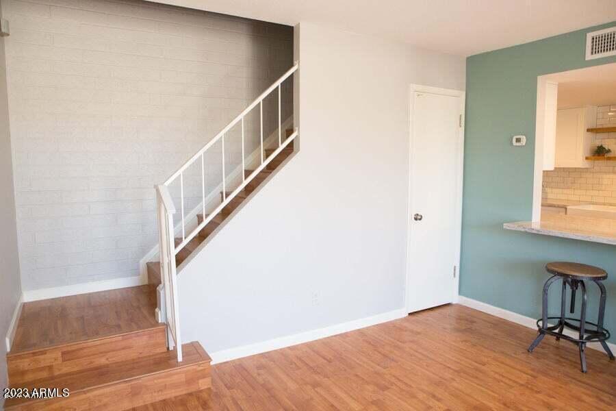 Total remodel, done the right way! Super clean & new. Sits right off the Greenbelt, so not only super cute, but an awesome location. Kitchen has newer granite counters, stainless steel appliances, white cabinets & subway tile back splash. A wood post, wood shelf & farmhouse sink in kitchen add to the wow factor. Entire house is low maintenance wood floors, bathroom totally redone as well. Cool gray paint, very neutral & lots of natural light. Nice sized patio that faces Greenbelt. Jump on the Greenbelt for a run, a walk or a ride on your bike. This would be a great property for a professional who works from home, as you could turn the other bedroom into an office. This one is worth checking out!